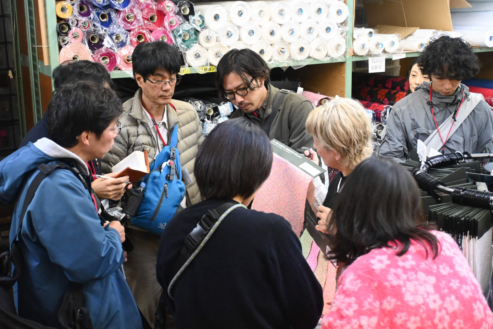 「機屋(はたや)巡りツアー」では、WATANABE TEXTILE、槙田商店、宮下織物の3事業者を見学しました。普段はなかなか見ることのできない織機などを実際に見る貴重な機会となりました。