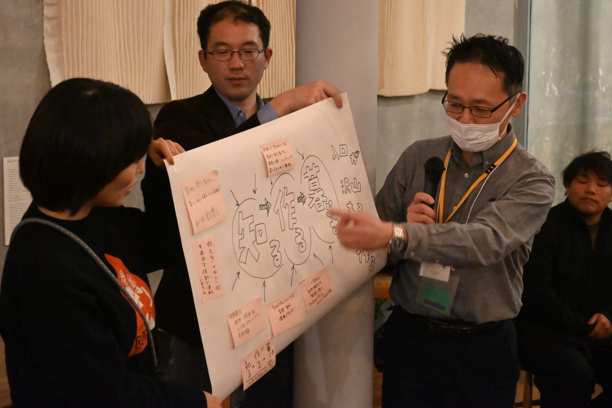 パネルディスカッション終了後には、グループワーク・交流会を行い、富士吉田の印象やこれからの富士吉田の未来について参加者同士で語り合いました。